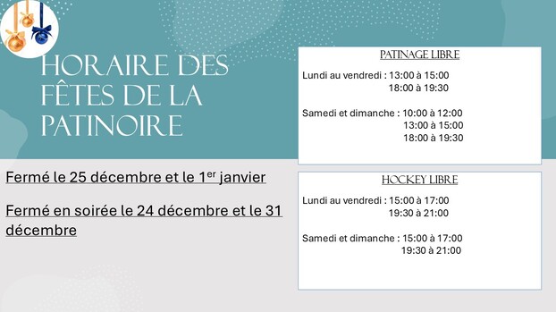 Samedi et dimanche:10:00 à 15:0018:00 à 19:30